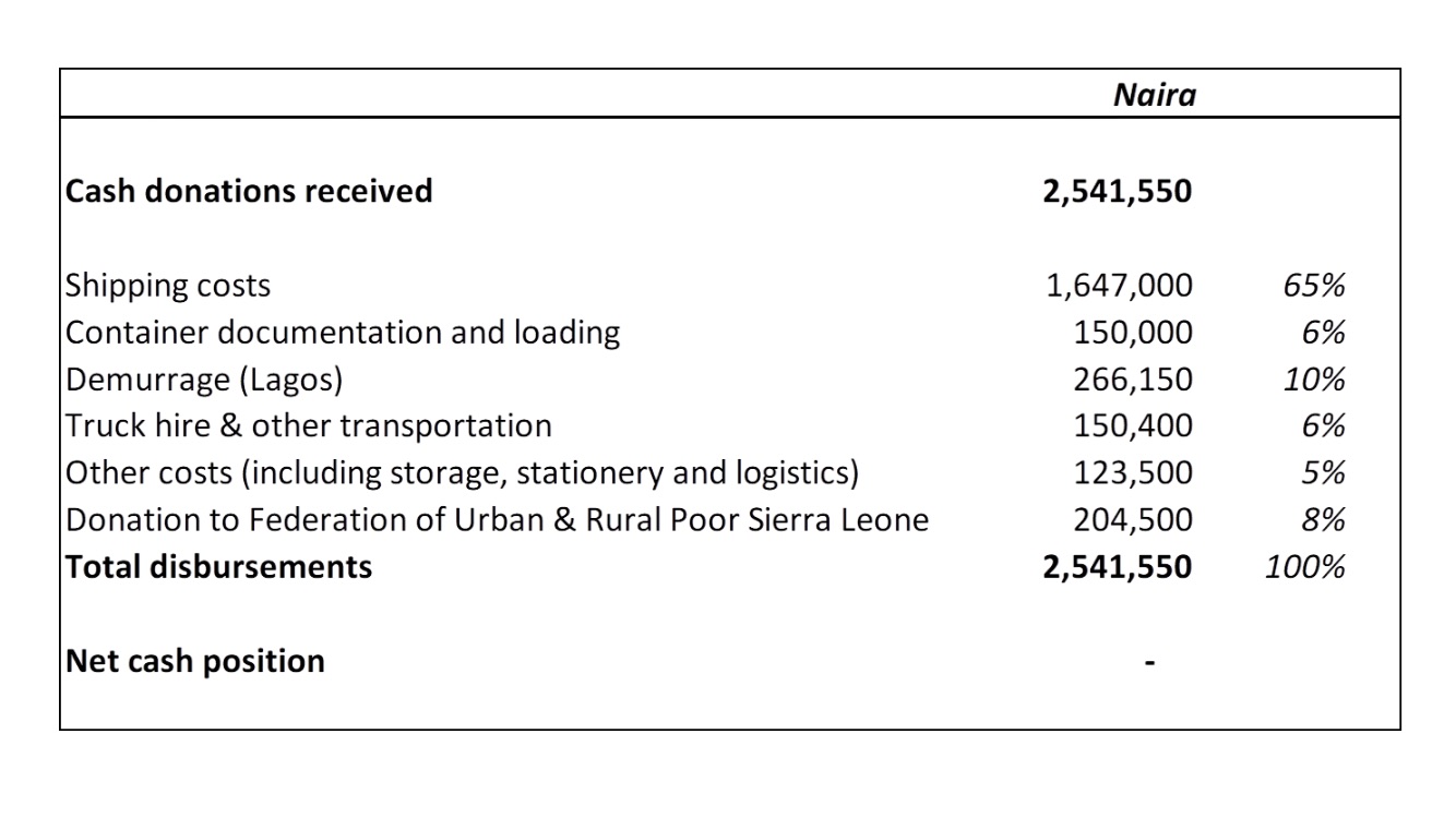 Anyway, the donated items finally set sail from Lagos to Freetown on the 17th of February 2018 (having incurred a whole lot of demurrage charges). It was on that basis that I first drafted my report; little did I know….